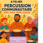 Activité pendant laquelle chaque participant pourra apprendre et participer avec les percussionnistes. Plusieurs percussions seront fournies au public, afin qu’il puisse interagir avec les musiciens et apprendre certains rudiments de cette musique rythmée.